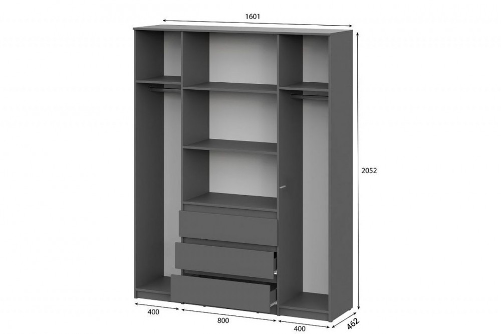ДЕНВЕР Шкаф четырехстворчатый (Графит серый)